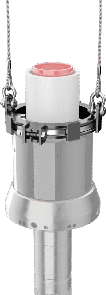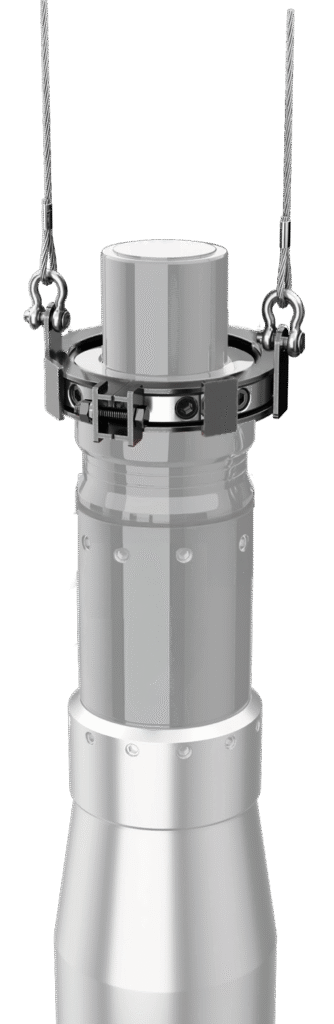 The CRT Tether is designed to prevent your Casing Running Tools (CRT) from falling should the CRT tool joint become disengaged from the top drive quill. The CRT Tether is installed on the CRT and secured to the top-drive with wire rope cables. The design allows the Tether Cage to swivel around the CRT permitting normal function of the CRT while installed.